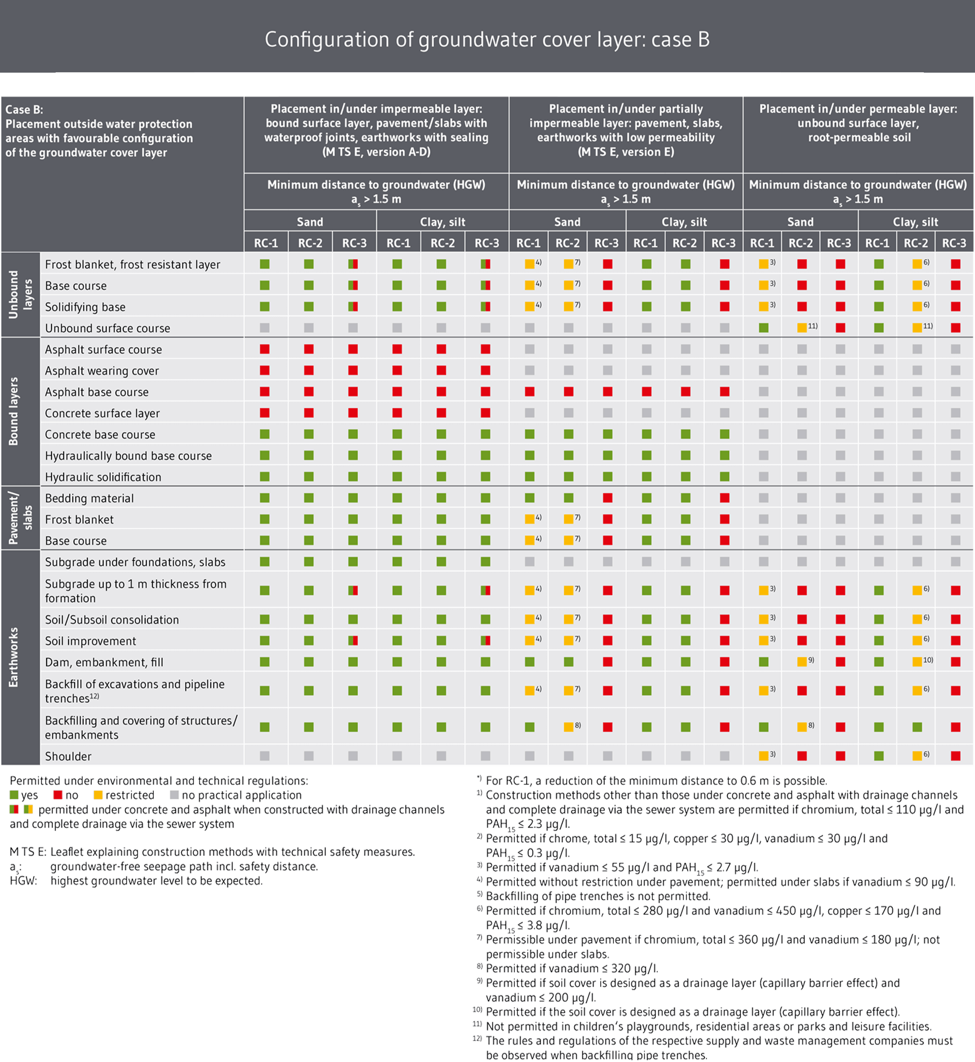 - The use of recycled aggregates in areas where the groundwater cover layer consist of gravel or coarse-grained material is not permitted; in this case, an artificial cover layer may be produced with the approval of the authorities.