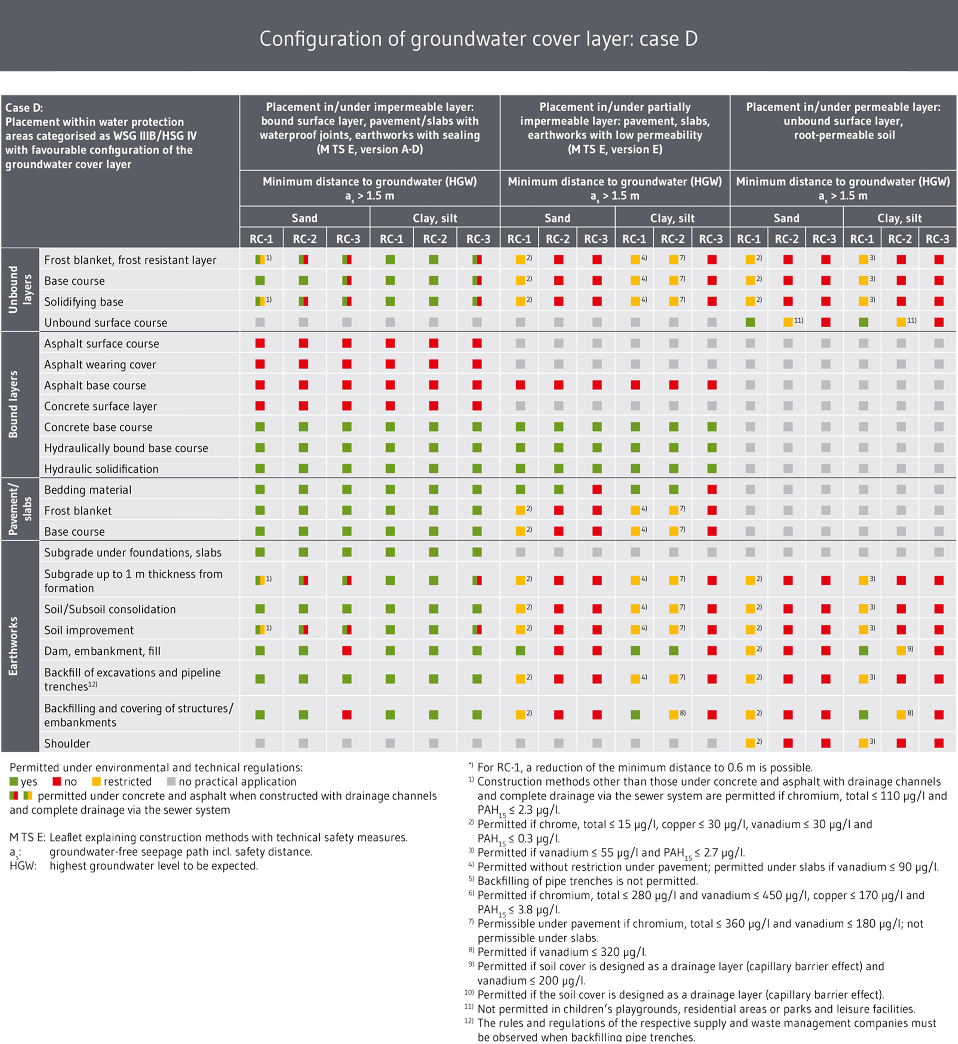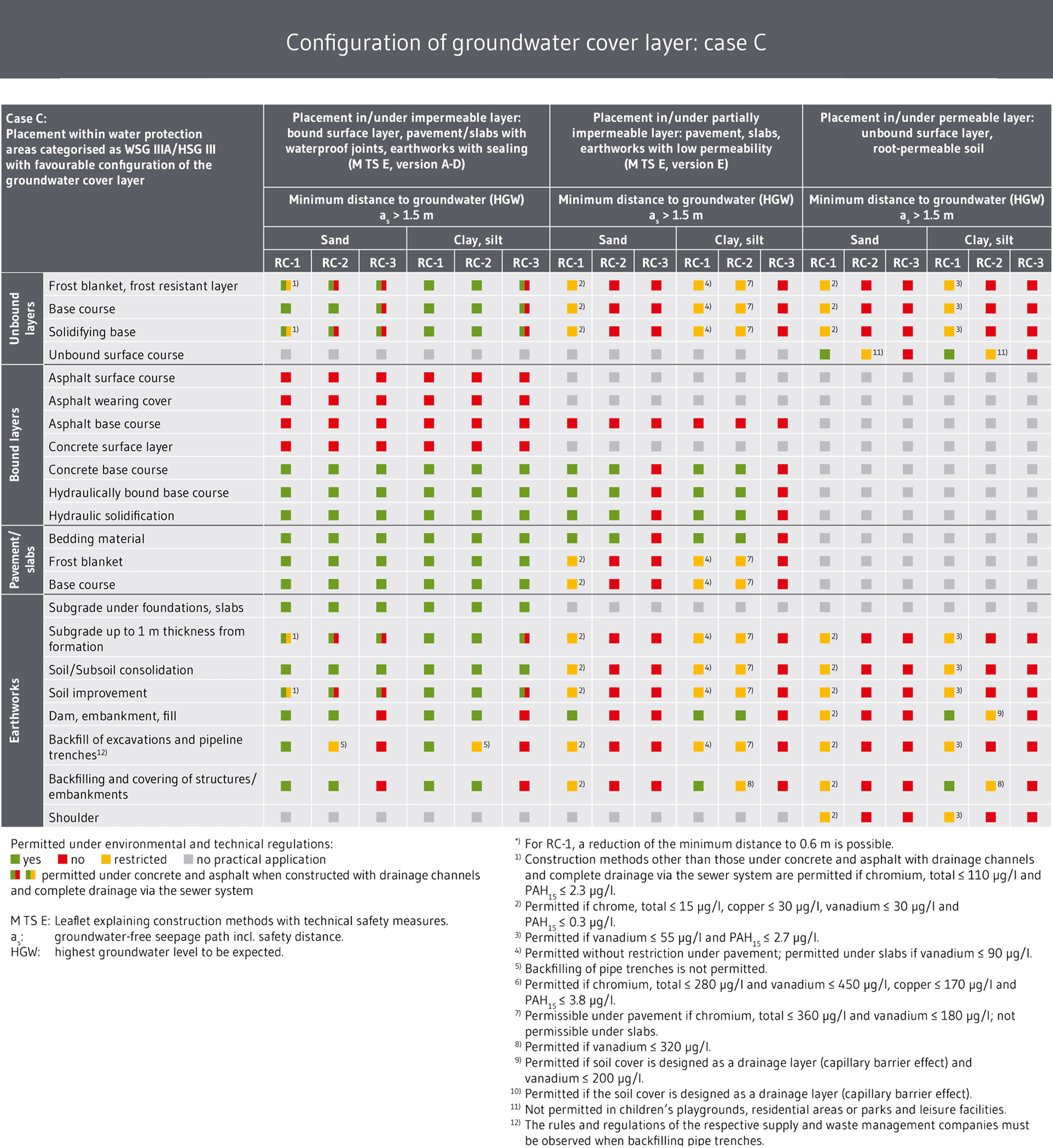 - The use of recycled aggregates in water protection areas of zone WSG I and II is not allowed.